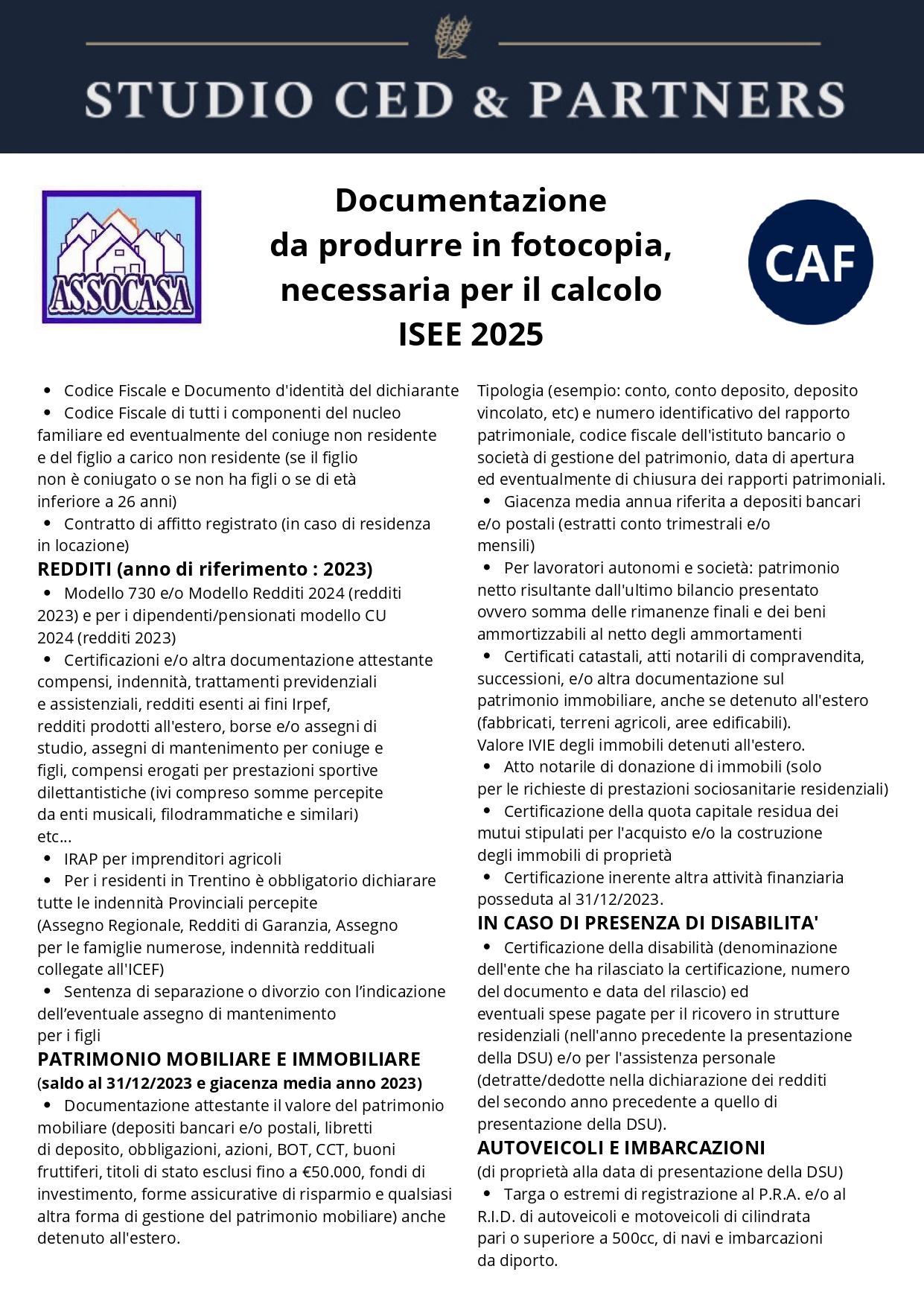 MOD. 730/ISEE/UNICO/IMU/BONUS